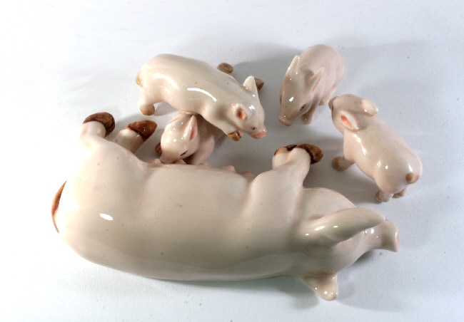 Sau und Ferkel, Porzellanminiatur