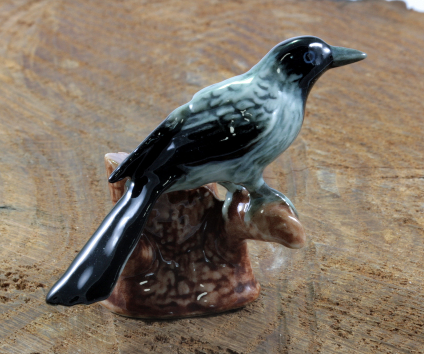 Rabe auf dem Baumstumpf, Porzellanminiatur